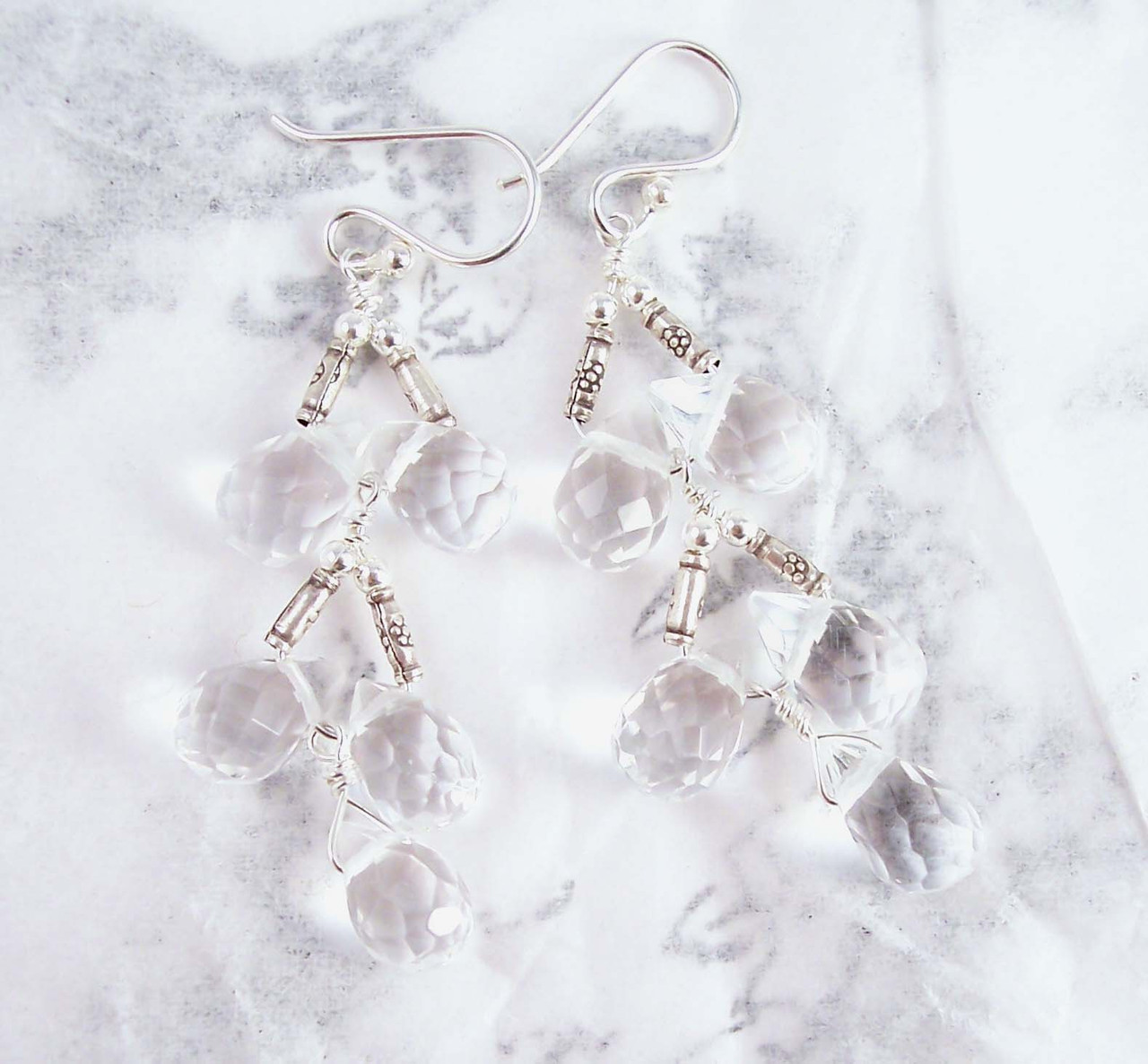 Sterling Silver Faceted Teardrops Tiered Wire-Wrapped Earrings, Clear