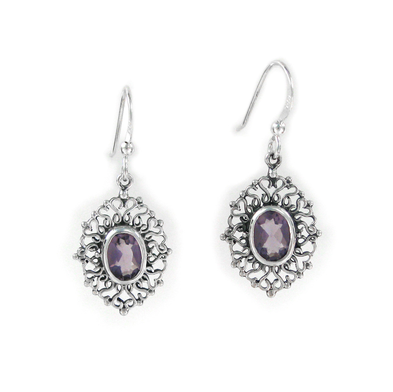 Click the button below to add the Sterling Silver Filigree Frame Crystal Drop Earrings, Purple to your wish list.