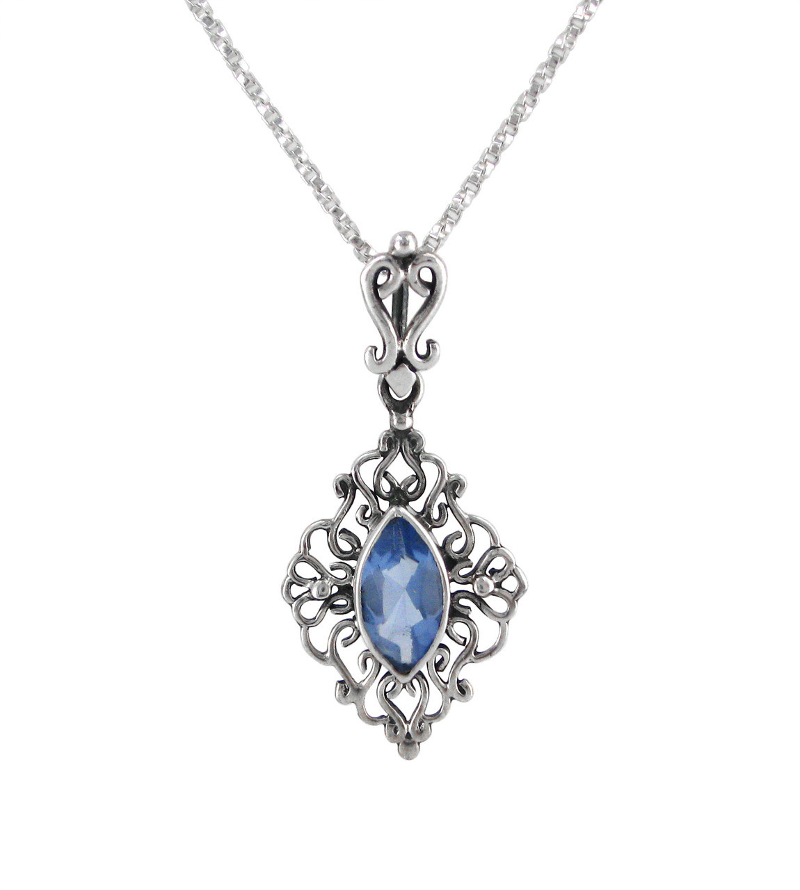Click the button below to add the Sterling Silver Filigree Marquise Stone Pendant Necklace, Blue to your wish list.