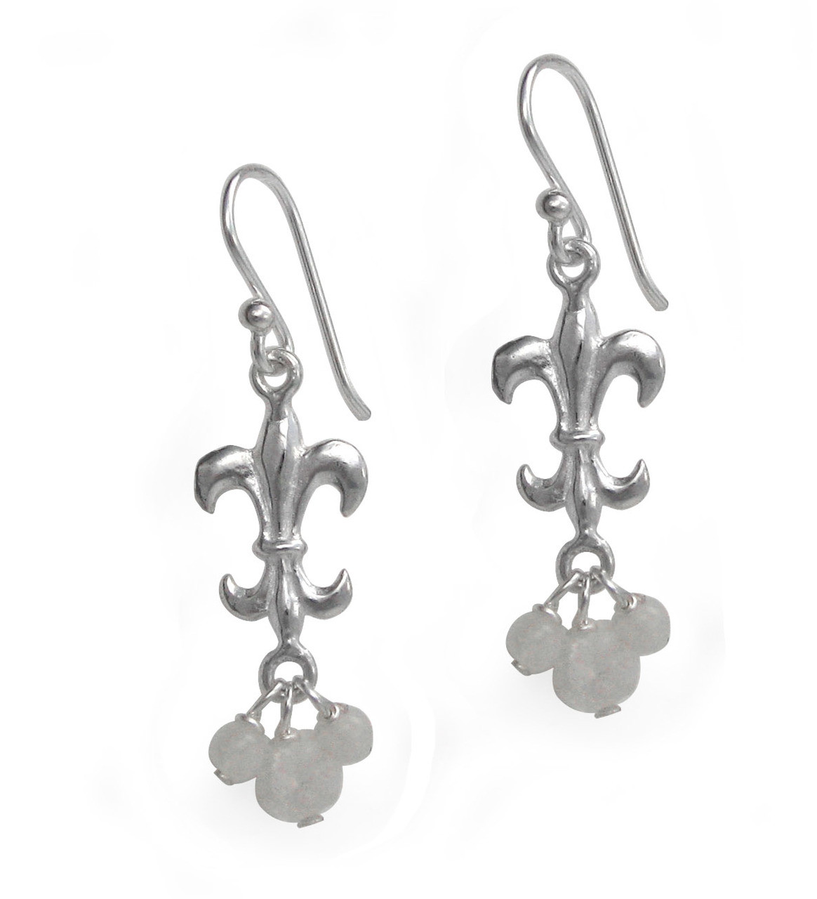 Click the button below to add the Sterling Silver Fleur-de-lis Stone Cluster Drop Earrings, Moonstone to your wish list.