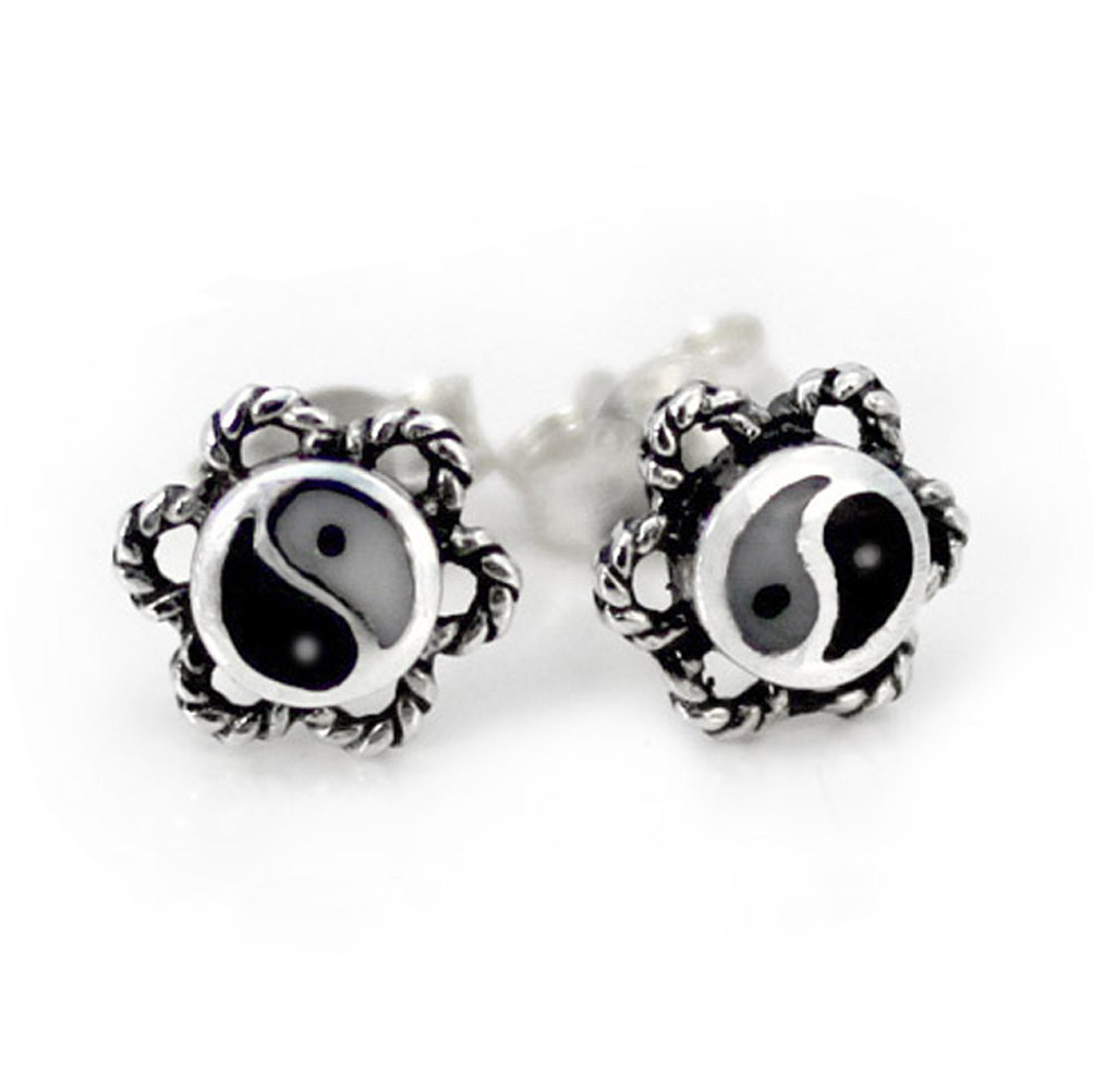 Click the button below to add the Sterling Silver Flower Yin Yang Post Stud Earrings to your wish list.