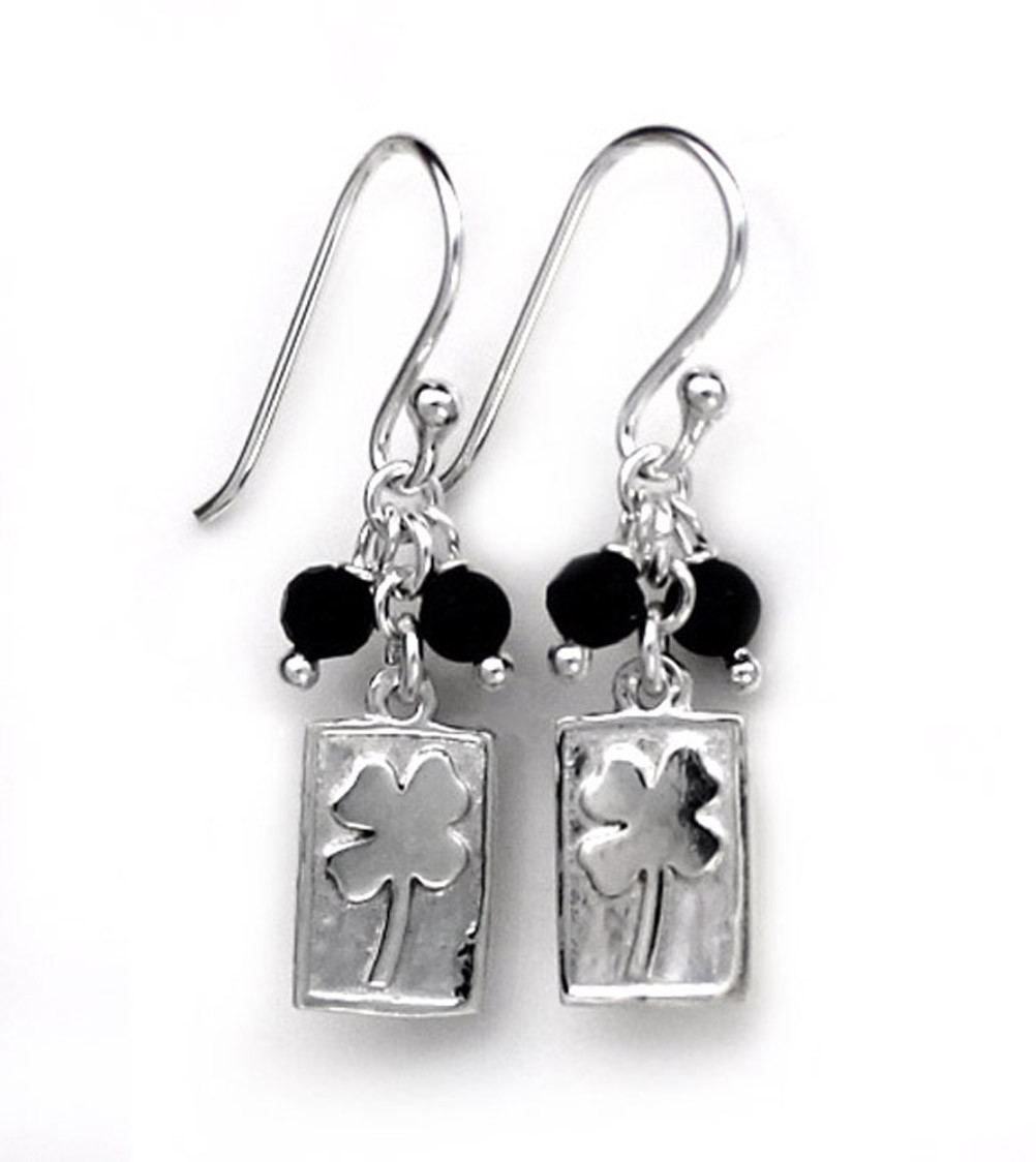 Click the button below to add the Sterling Silver Four Leaf Clover Charm Stone Top Cluster Drop Earrings, Onyx to your wish list.