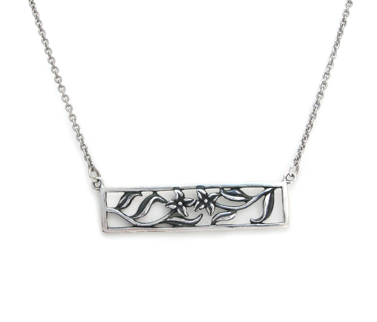 Click the button below to add the Sterling Silver Four Points Flowers Cutout Rectangle Frame Station Necklace to your wish list.