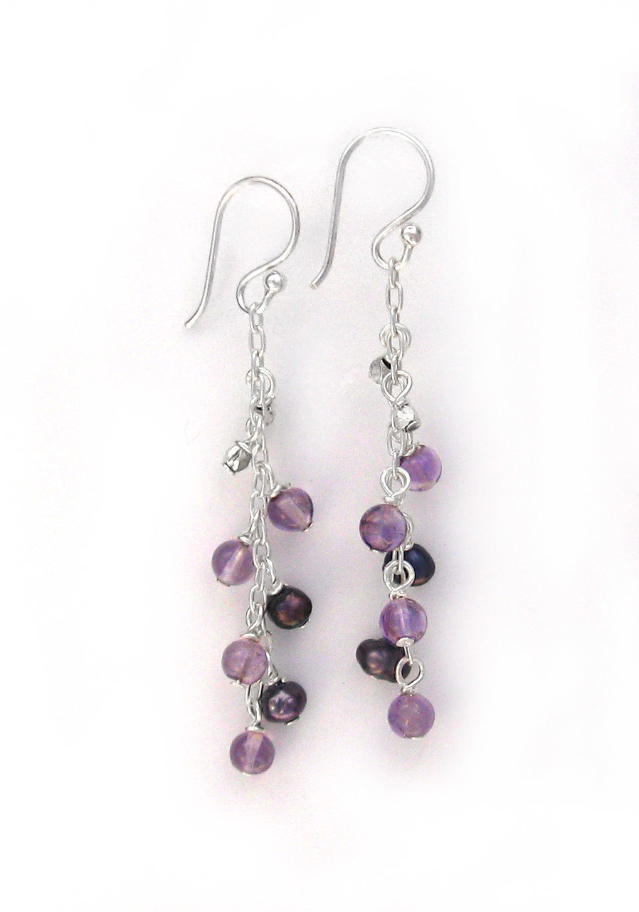 Click the button below to add the Sterling Silver Gemstones and Pearls Beaded Chain Drop "Bree" Earrings, Amethyst to your wish list.