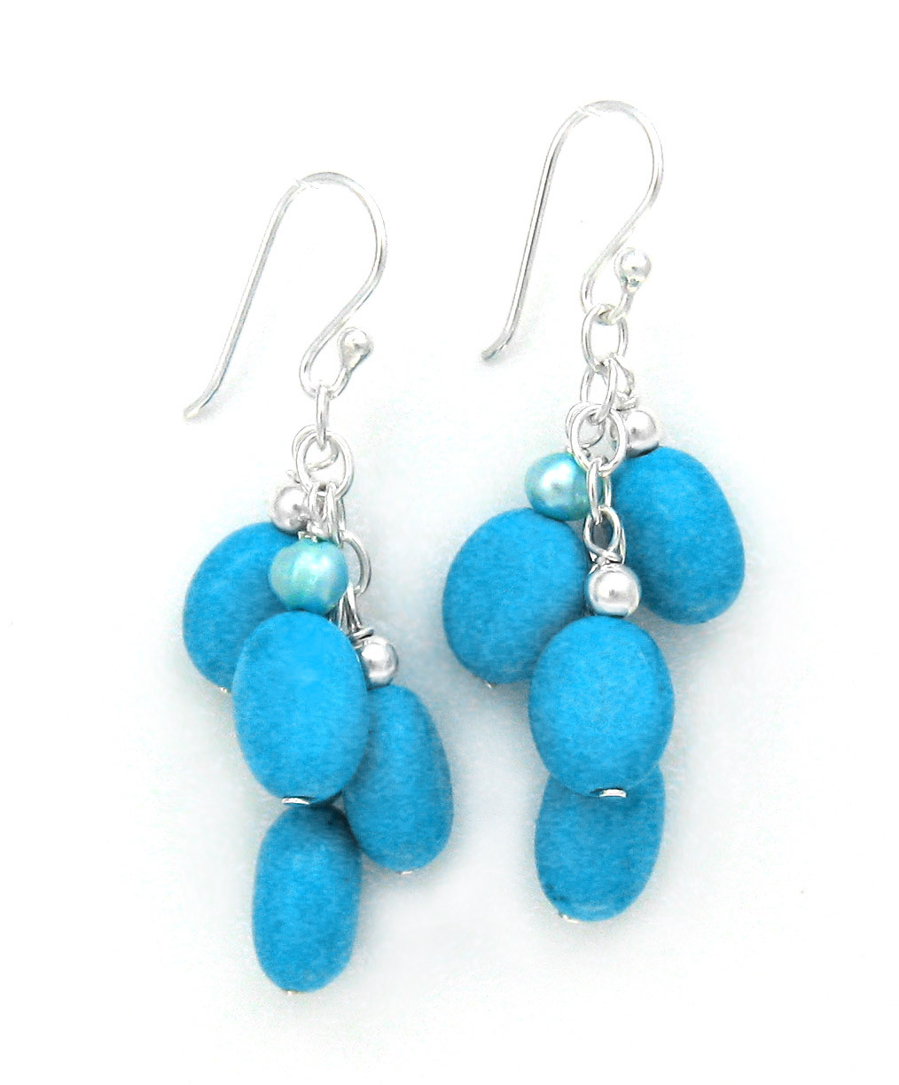 Loading... Please wait...Gemstone is wire-wrapped with silver beads and freshwater pearls in a cluster drop earrings. Clean fresh designs is appropriate for many occasions. Gemstone may vary in color, size, and inclusions. Photo enlarged to show details.