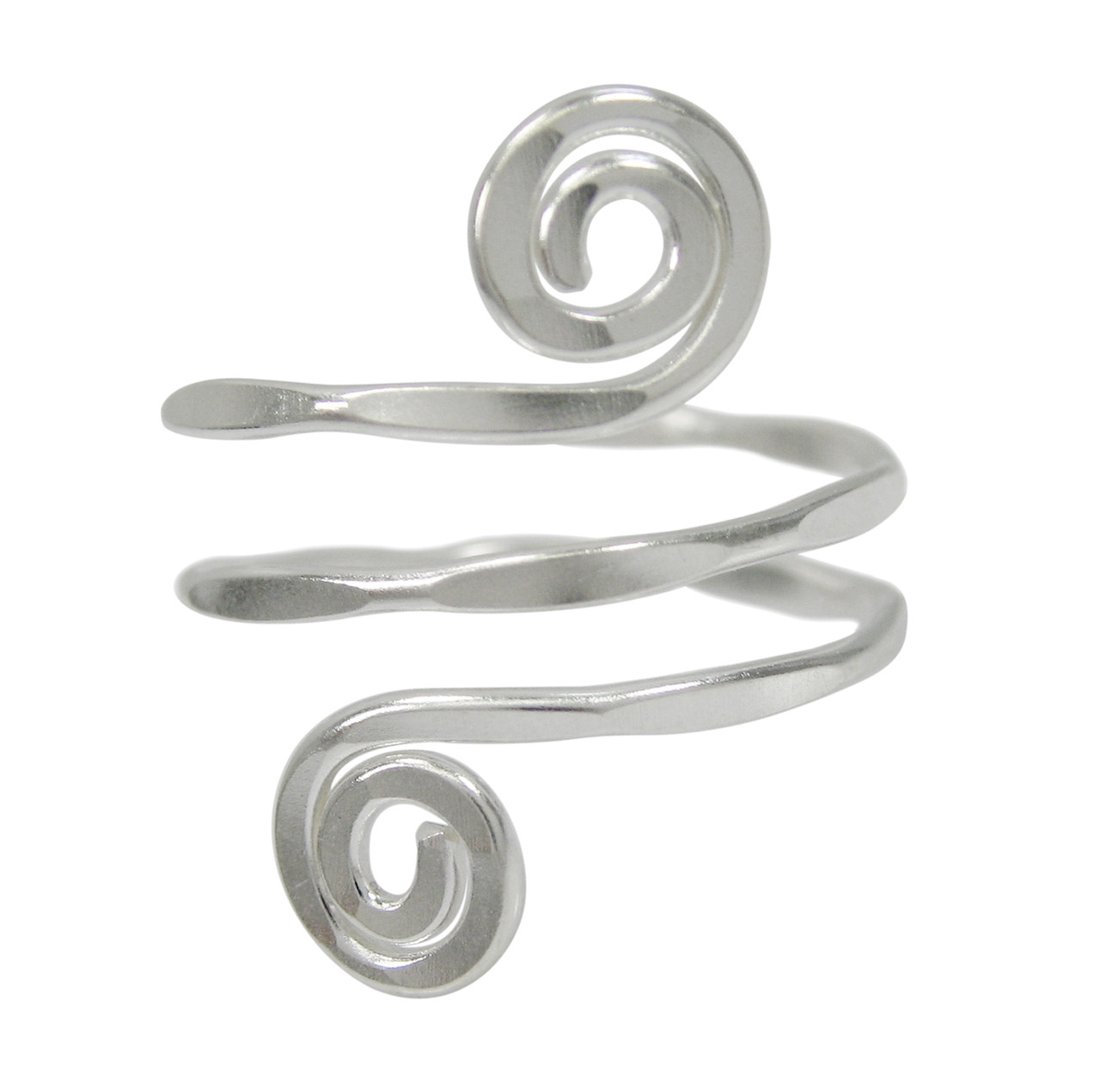 Sosi B. sterling silver S-swirl wrap-around ring is stunning and conveniently adjustable. Be noticed with this eye catching thumb ring. Adjustable so you can wear on any finger you like. Hammered by hand for an artistic finish. Ring is approximately size 7 and can adjust to be slightly smaller or larger. Swirl is approximately 7/8 inch tall.
