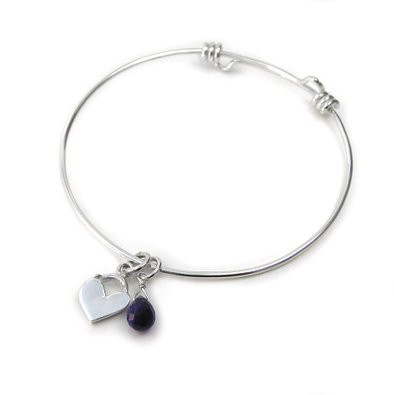 Click the button below to add the Sterling Silver Heart and Gemstone Charm Adjustable Bangle Bracelet, Amethyst... to your wish list.
