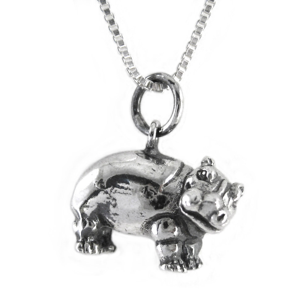 Loading... Please wait...Hippopotamus is Greek for "Horse of the river". Hippos are the third largest land animal (by weight) with large round belly and stubby legs. These attributes are what makes this hippo charm so adorable. Charm is 3-dimentional. Antique finish on polished silver. Photo enlarged to show details.