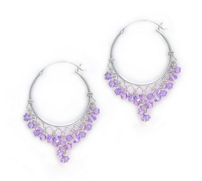 Be noticed! Sparkling crystals individually wire-wrapped onto the hoops with a small cluster drop at the center. Lots of colors and lots of movements! Earrings measure approximately 1 7/8" from long and 1 1/4" wide.