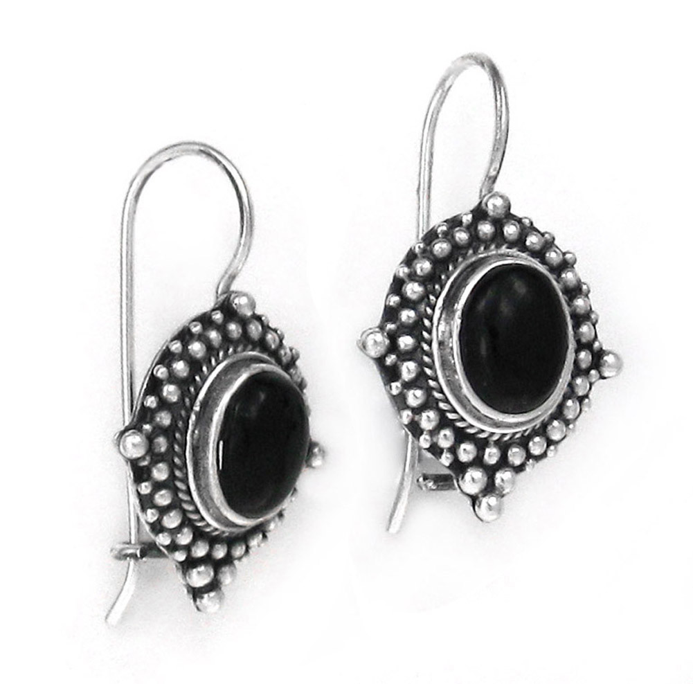 Earrings to match your free spirit. Sterling silver and reconstituted onyx. Photo enlarged to show details.
