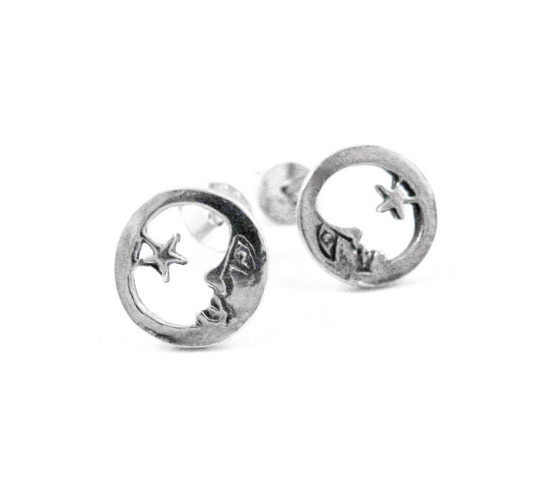 Click the button below to add the Sterling Silver Moon Face and Star Post Earrings to your wish list.