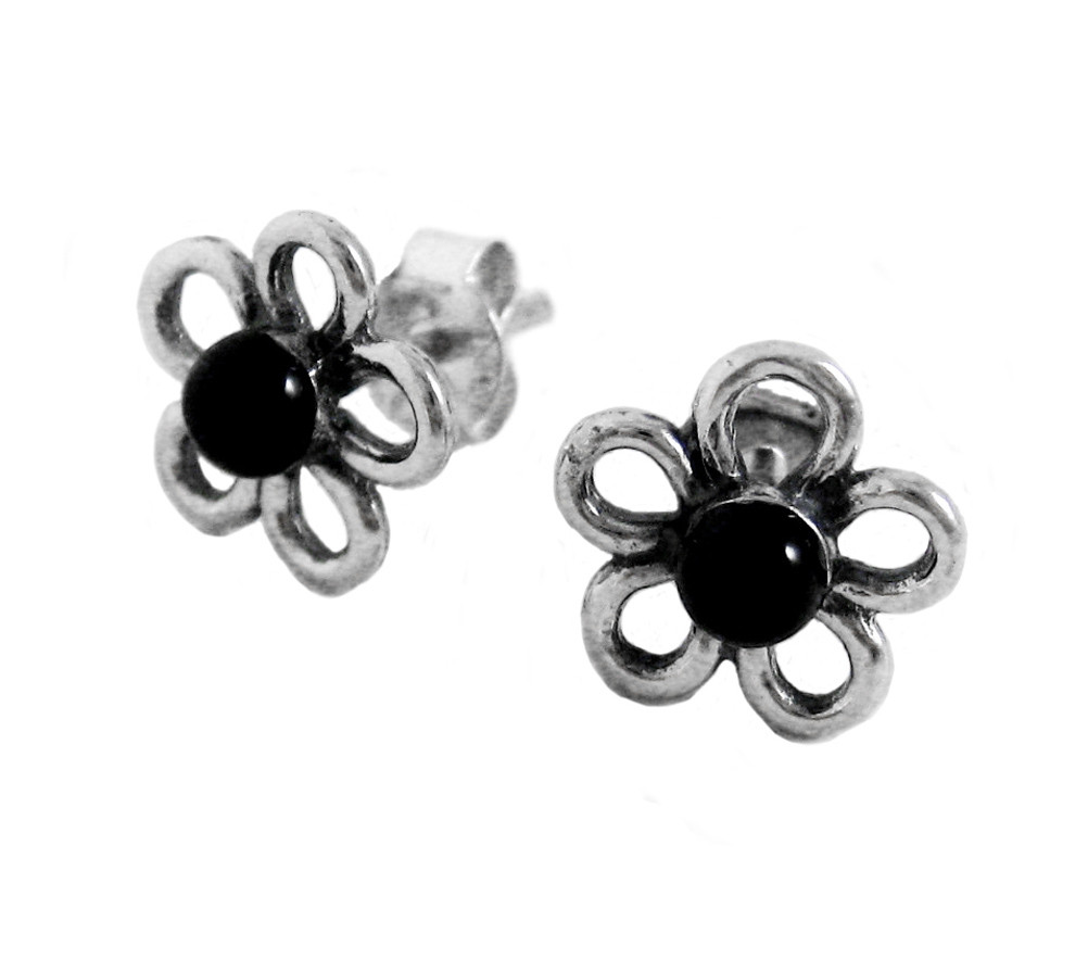 Click the button below to add the Sterling Silver Onyx Daisy Flower Post Earrings to your wish list.