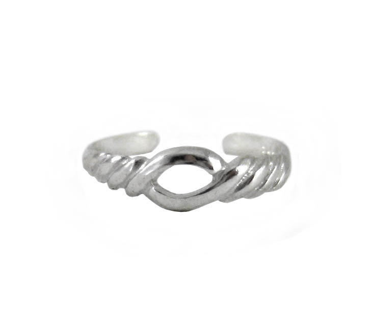 Loading... Please wait...Twist pattern with an opening at the center design toe ring is a great accent on your foot. Band toe ring is perfect summer accessorizing. Polished silver. Slide on toe ring from the top of the toe, do not bend the band open. Adjustable toe ring accommodates many sizes. Photo enlarged to show details.