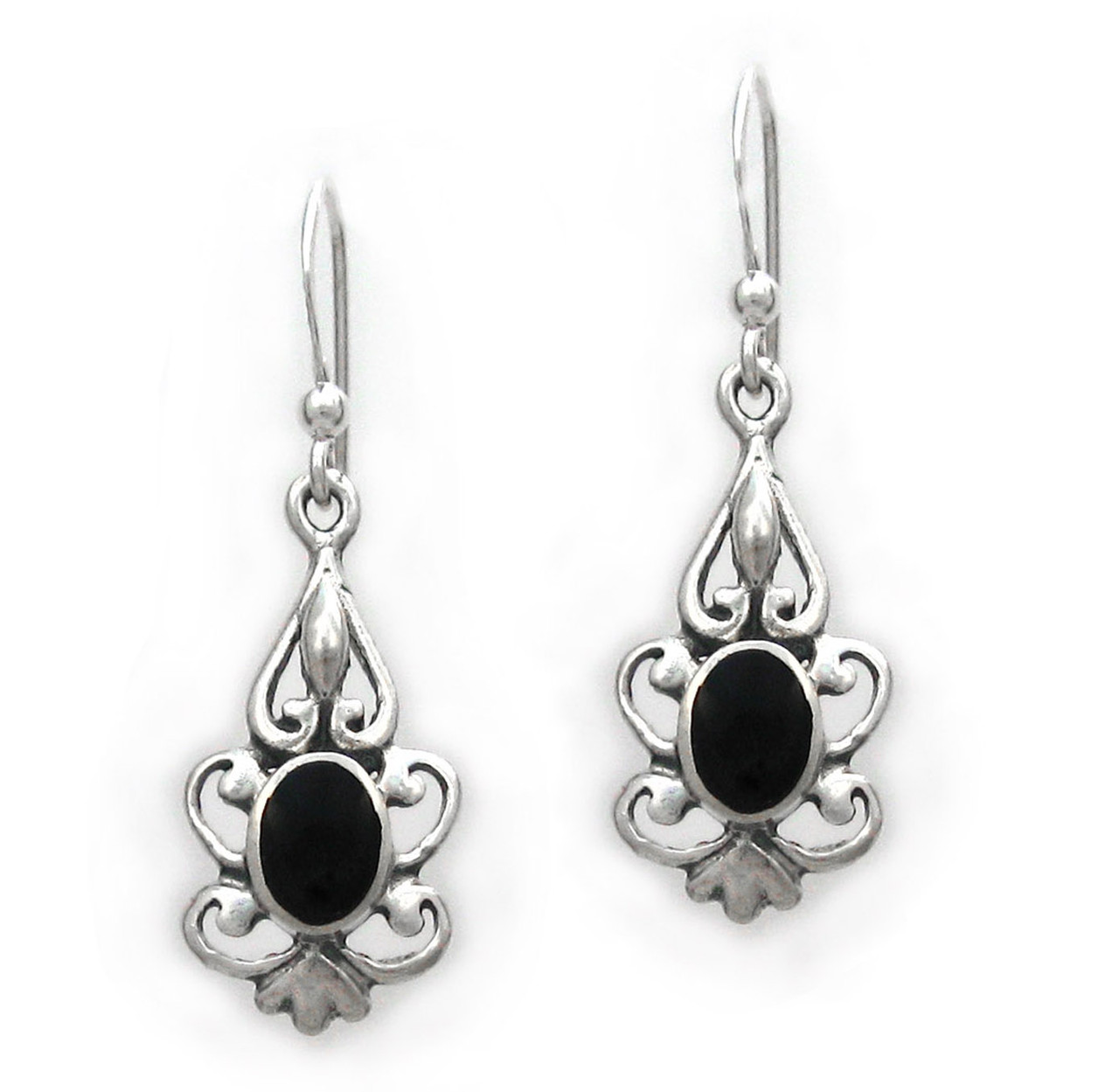 Click the button below to add the Sterling Silver Oval Stone Filigree Corine Drop Earrings, Onyx to your wish list.