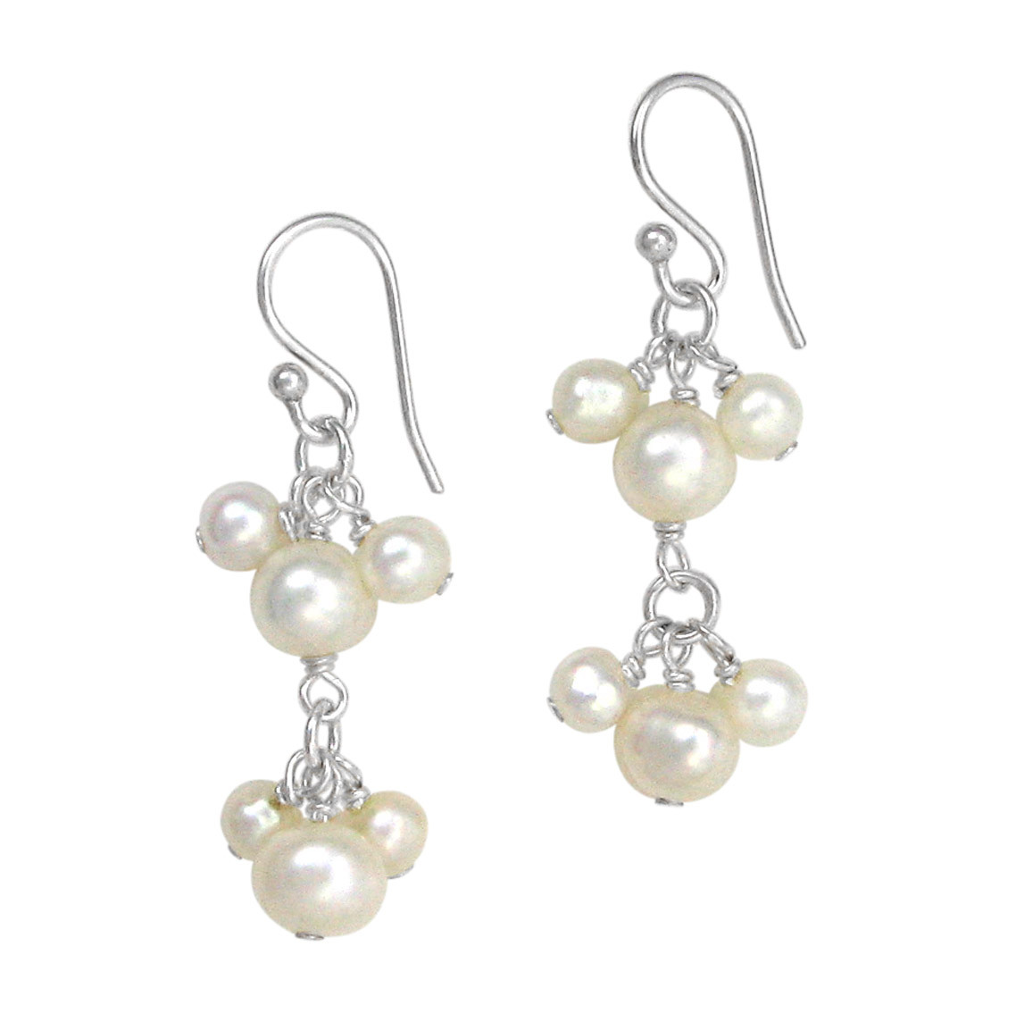 Click the button below to add the Sterling Silver Pearl Cluster Two Tier Drop Earrings, White to your wish list.