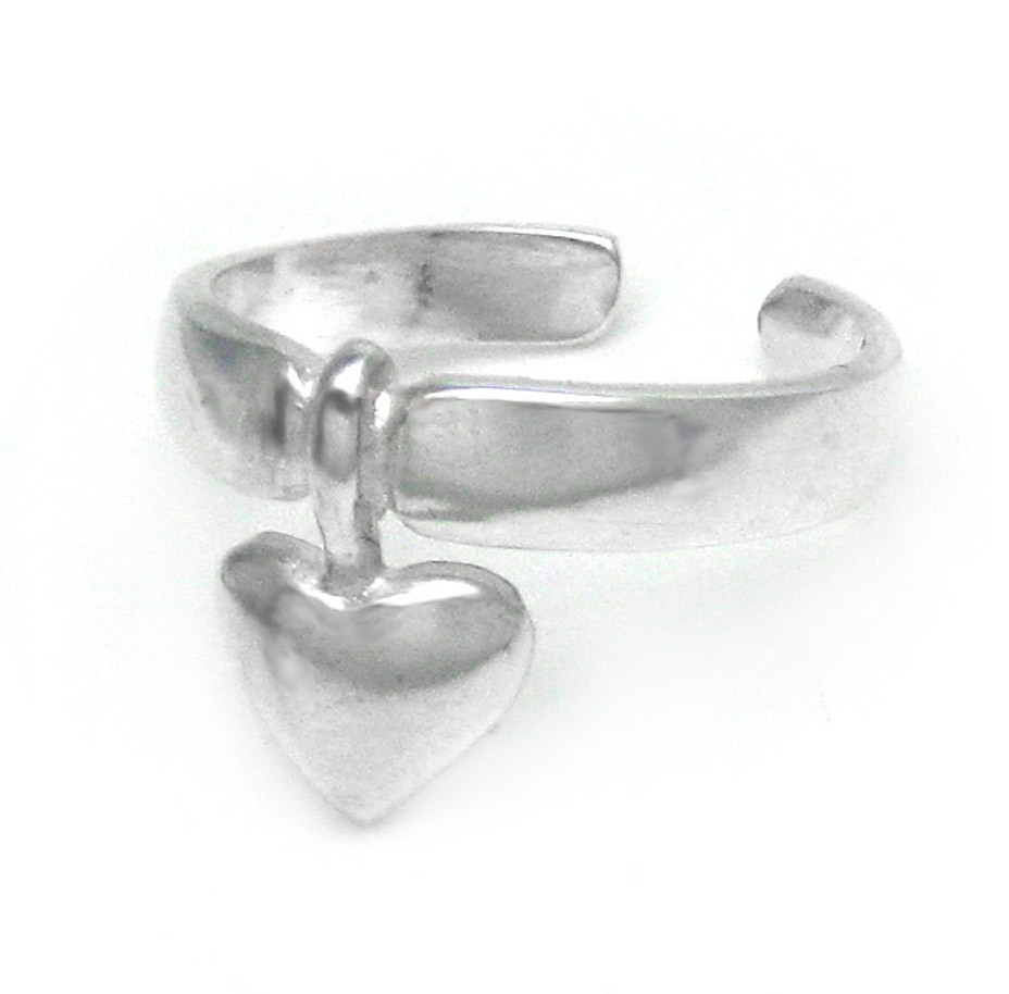 Loading... Please wait...Sterling silver band and heart toe ring is a great accent on your foot. Heart is stationary and does not move. Toe ring is perfect summer accessorizing. Polished silver. Slide on toe ring from the top of the toe, do not bend the band open. Adjustable toe ring accommodates many sizes. Photo enlarged to show details.
