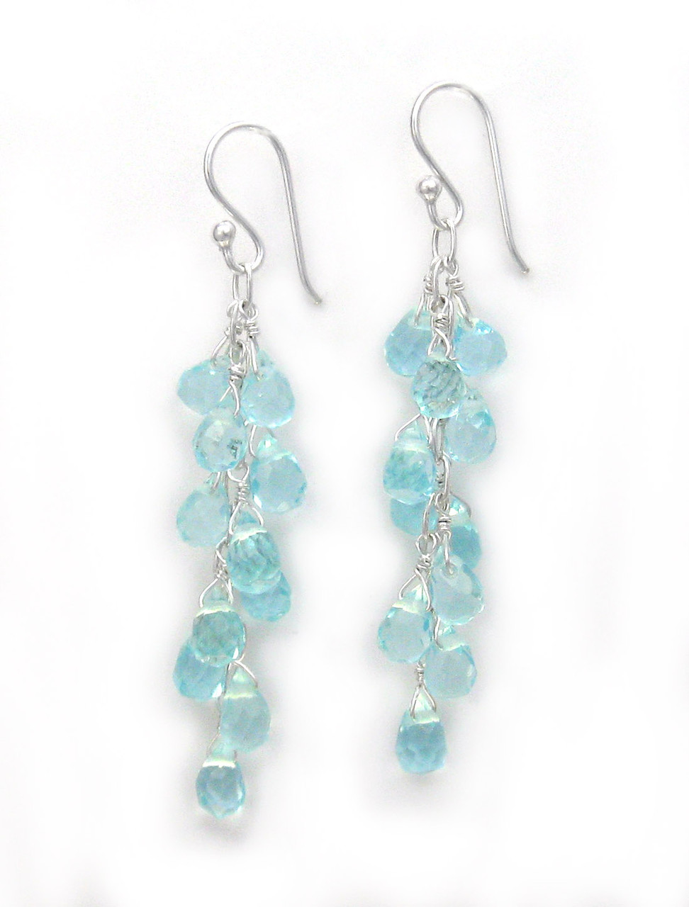 Loading... Please wait...Sterling silver "Regen" teardrop crystals wire wrapped onto chain drop earrings. Regen is Dutch for rain which is a wonderful name for this earring. Dangling and sparkling color crystals catch the eye as the earring move to and fro. A lovely piece to wear rain or shine. Earring is approximately 2 1/8 inch drop from top of hook.