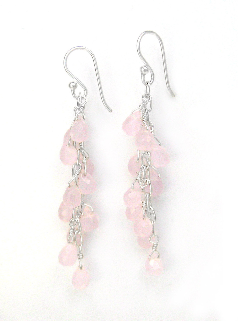Sterling silver "Regen" teardrop crystals wire wrapped onto chain drop earrings. Regen is Dutch for rain which is a wonderful name for this earring. Dangling and sparkling color crystals catch the eye as the earring move to and fro. A lovely piece to wear rain or shine. Earring is approximately 2 1/8 inch drop from top of hook.