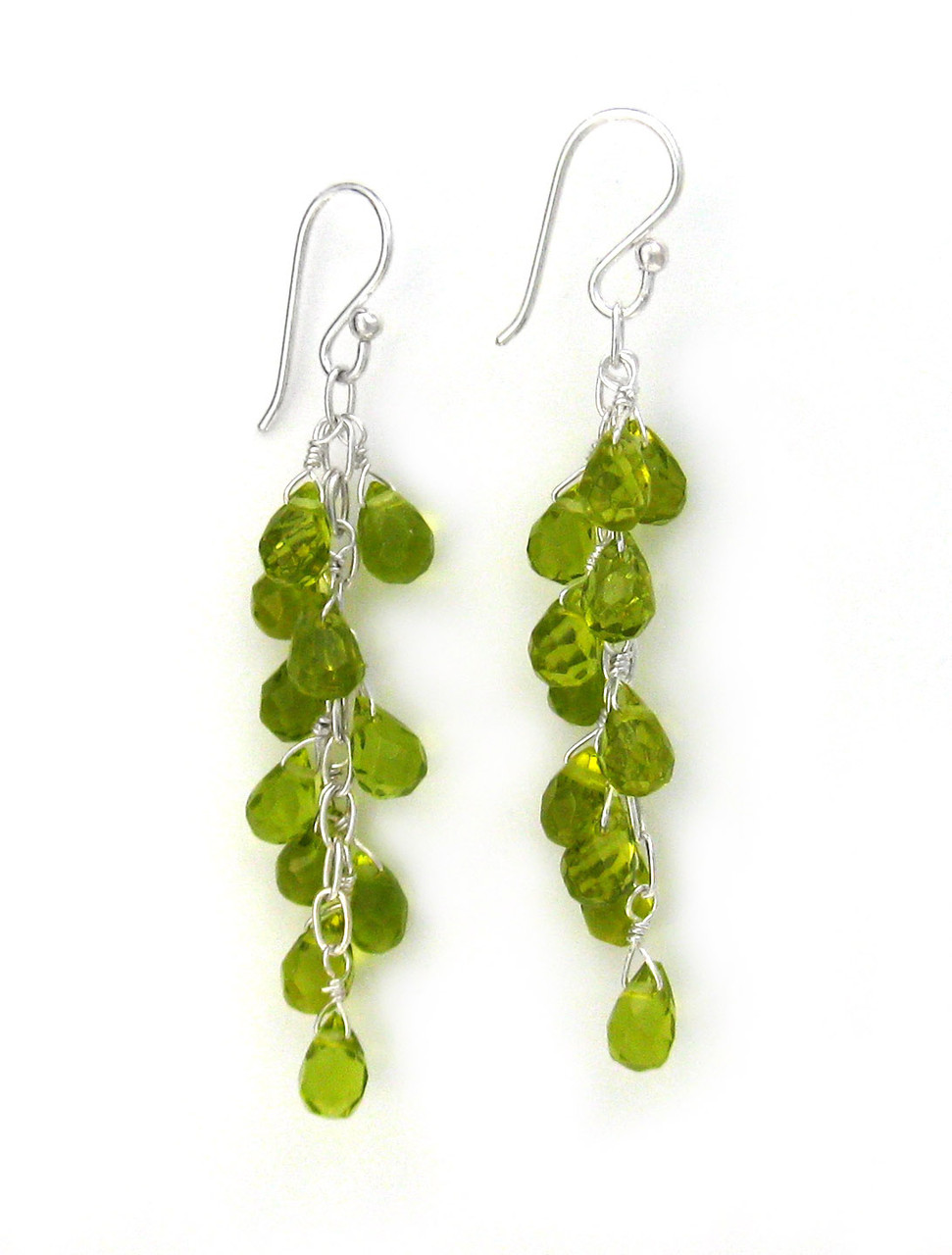 Sterling silver "Regen" teardrop crystals wire wrapped onto chain drop earrings. Regen is Dutch for rain which is a wonderful name for this earring. Dangling and sparkling color crystals catch the eye as the earring move to and fro. A lovely piece to wear rain or shine. Earring is approximately 2 1/8 inch drop from top of hook.