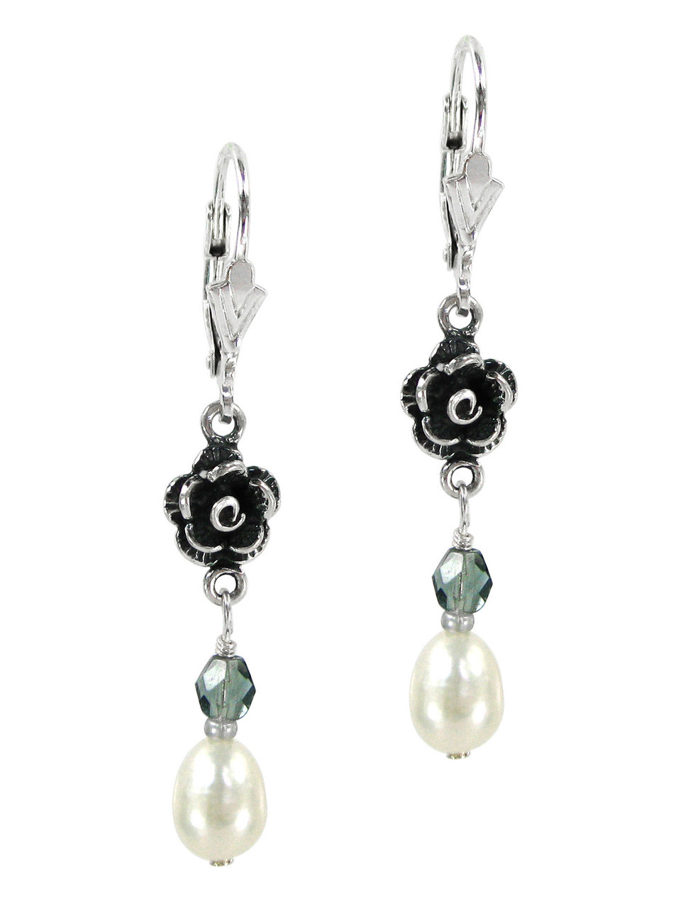 Click the button below to add the Sterling Silver Rose Cultured Pearl Crystal Drop Earrings, Blue to your wish list.