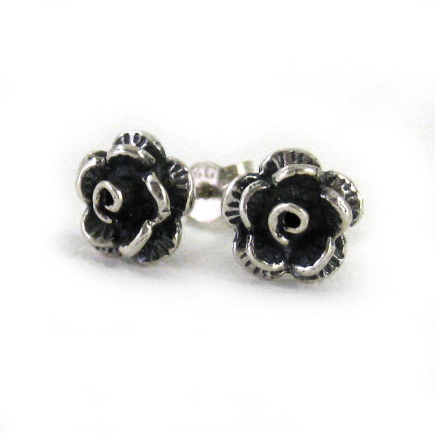 Tiered and antique finish to bring out the depth and dimensions of these lovely rose post earrings. Perfect to wear everyday and for any occasion. Photo enlarged to show details.