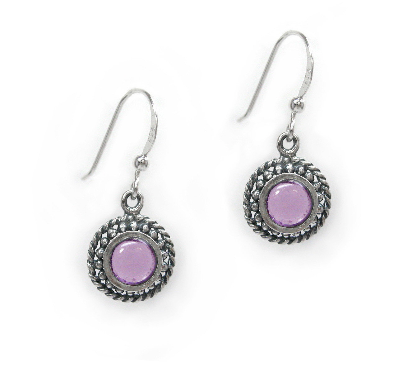 Click the button below to add the Sterling Silver Round Cabuchon Crystal Drop Earrings, Purple to your wish list.