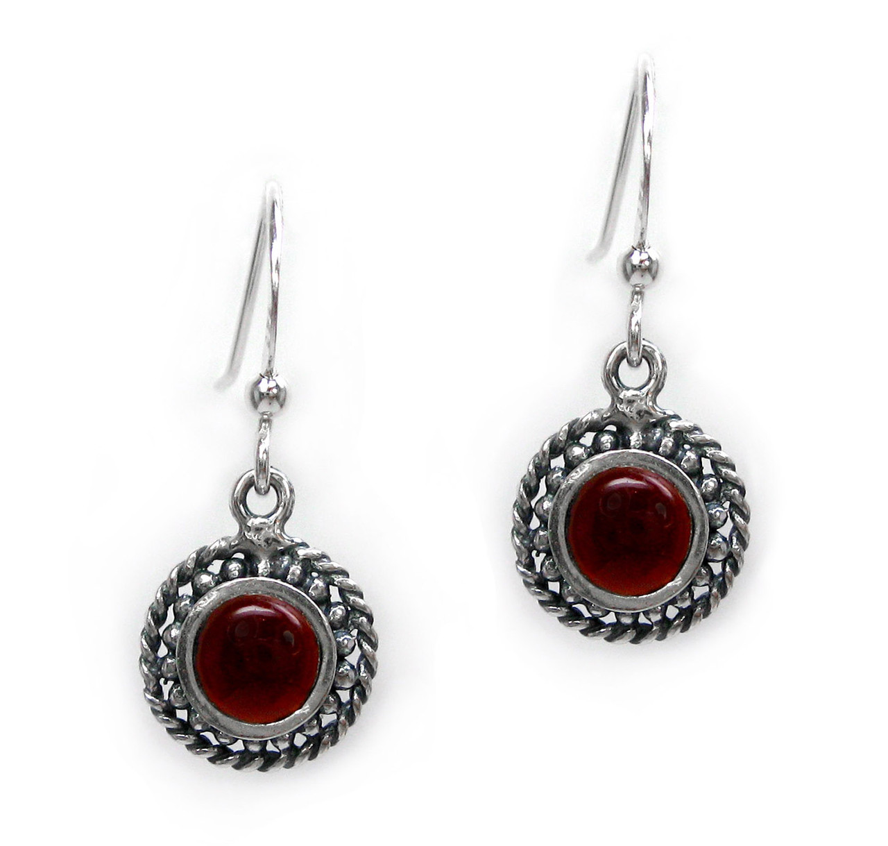 Click the button below to add the Sterling Silver Round Cabuchon Crystal Drop Earrings, Red to your wish list.
