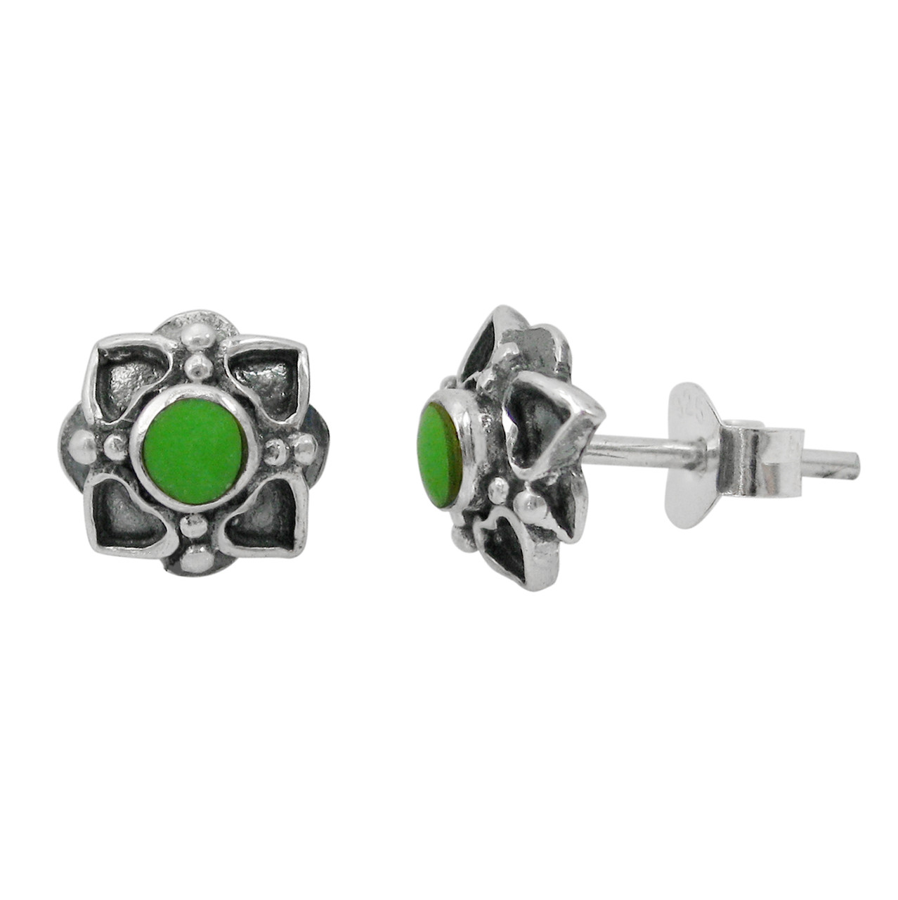 Sterling Silver Round Stone Four Corners Flower Post Stud Earrings, Gaspeite