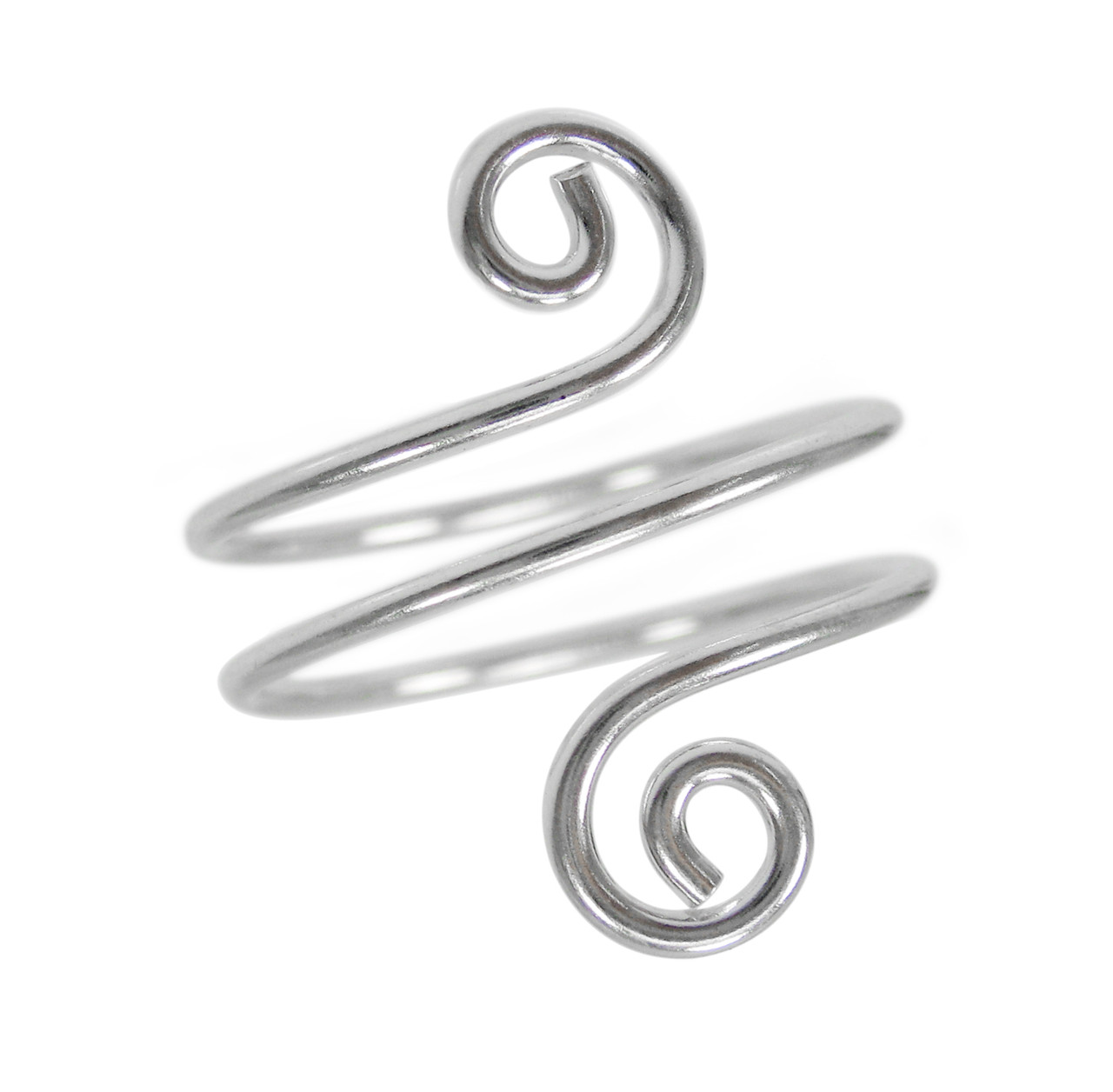 Sosi B. sterling silver S-swirl wrap-around ring is stunning and conveniently adjustable. Be noticed with this eye catching thumb ring. Adjustable so you can wear on any finger you like. Ring is made from round wire for a modern look. Ring is approximately size 7 and can adjust to be slightly smaller or larger. Swirl is approximately 7/8 inch tall.