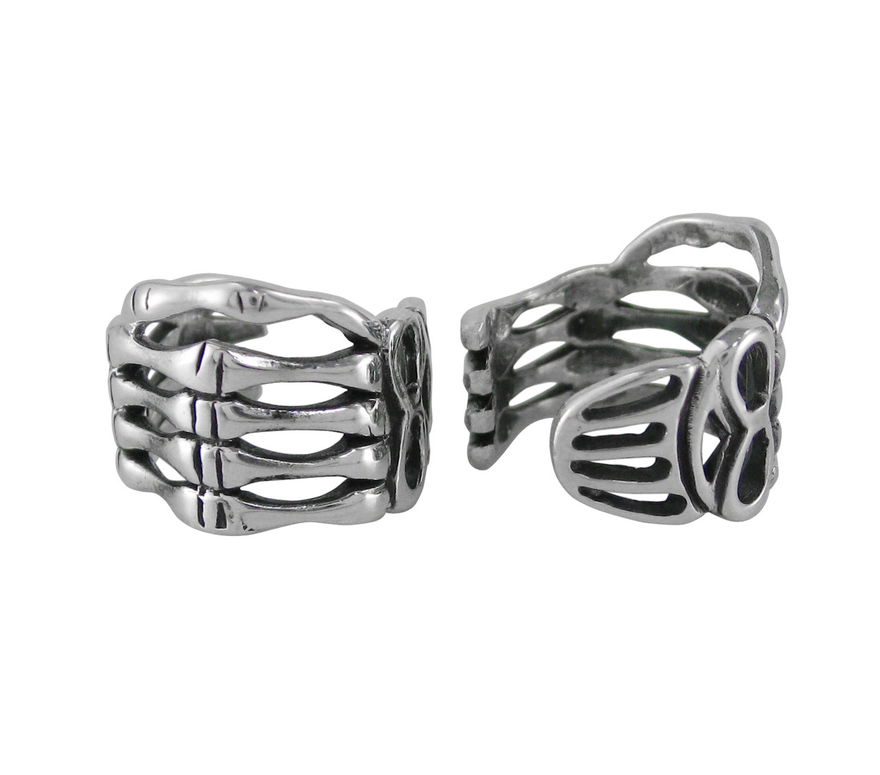Loading... Please wait...Skeleton hand ear cuff is a great accent on the ear. Antique finish on polished silver. No piercing needed to wear ear cuff. Photo enlarged to show details. Photo shows two angles of the ear cuff, please note the ear cuff is sold as an individual piece.