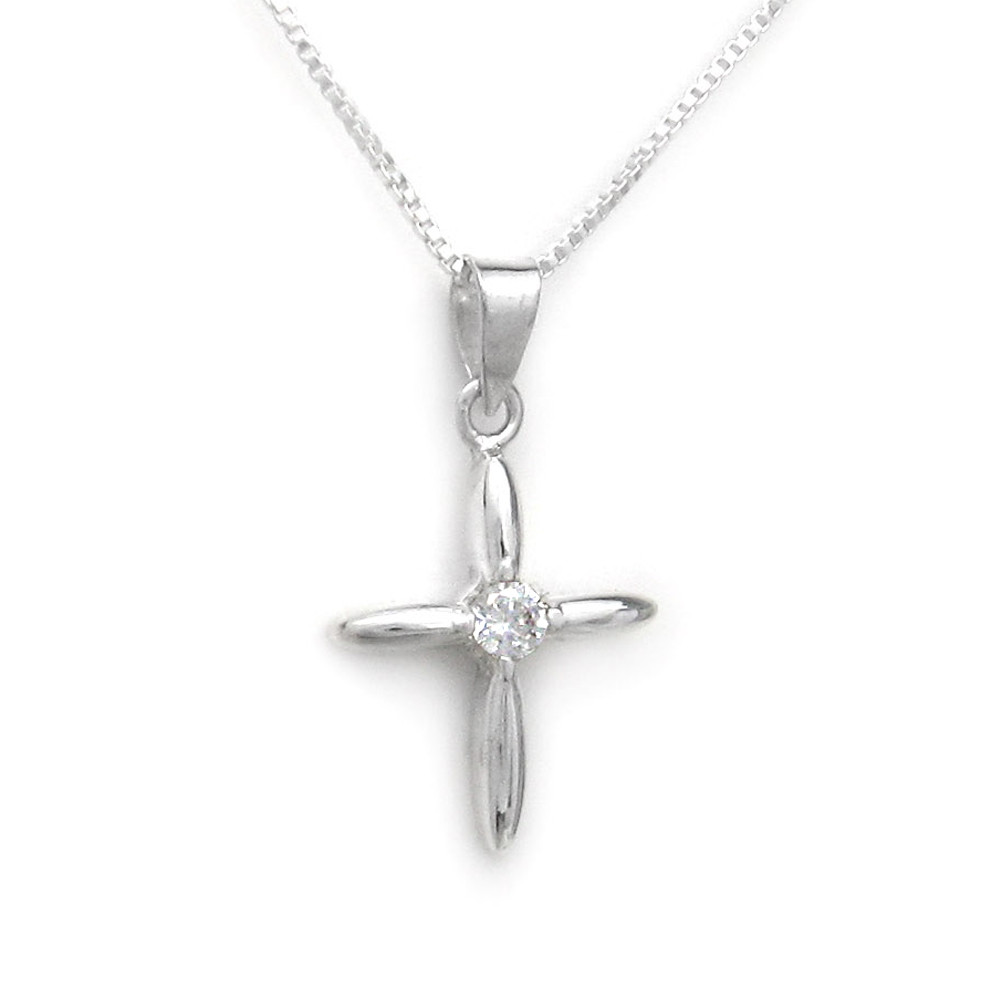 Click the button below to add the Sterling Silver Solitaire Crystal Cross Pendant Necklace, April Clear to your wish list.