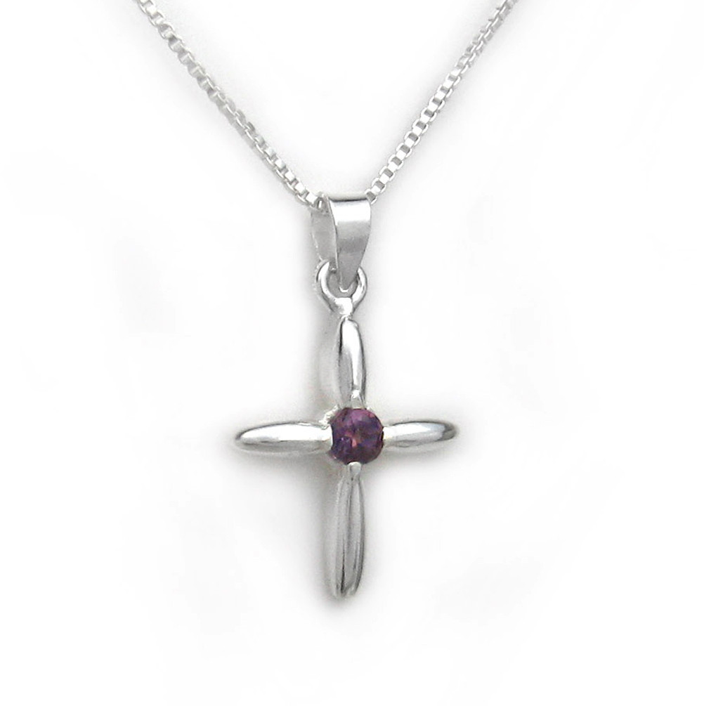 Click the button below to add the Sterling Silver Solitaire Crystal Cross Pendant Necklace, February Purple to your wish list.