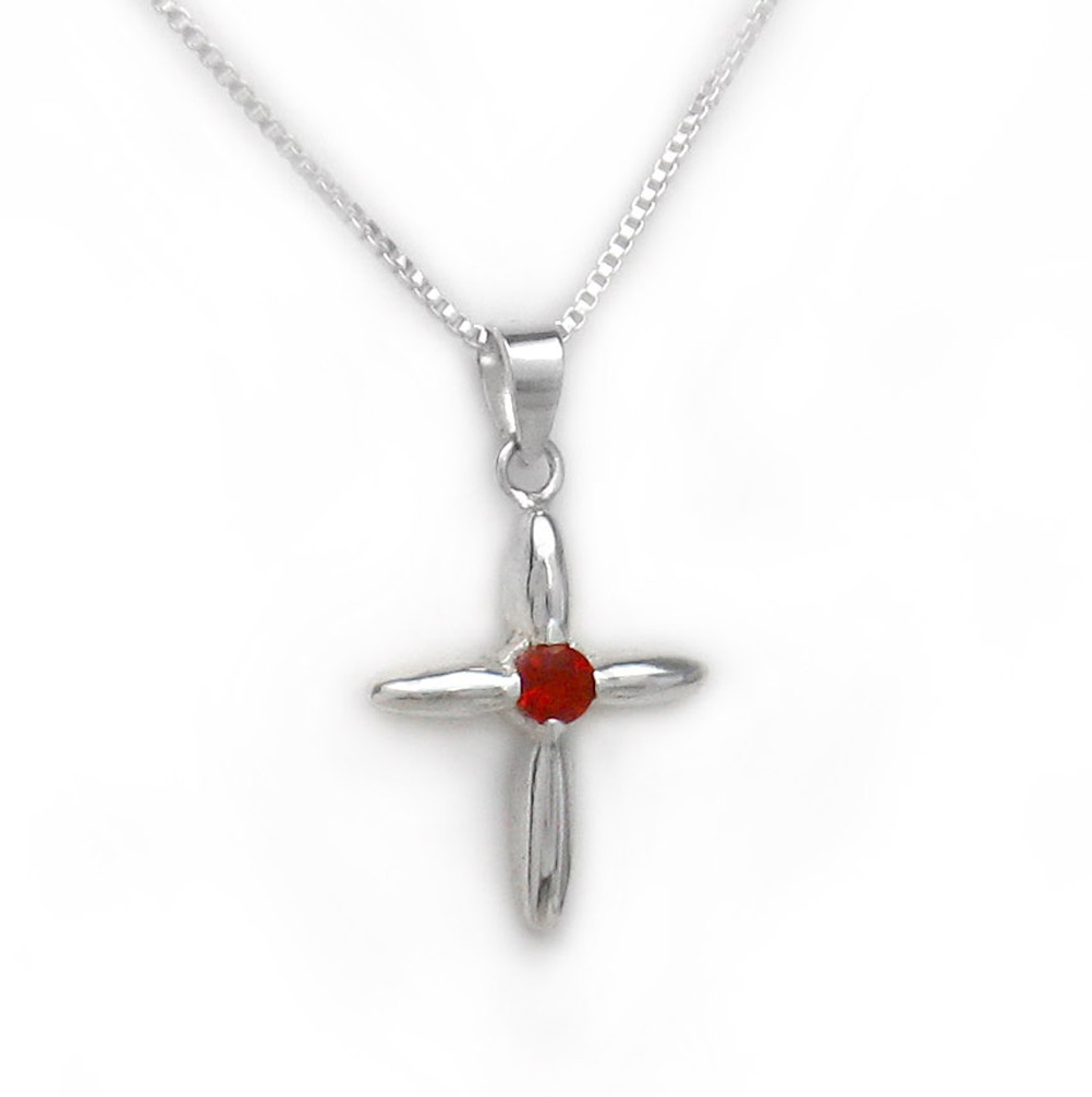 Click the button below to add the Sterling Silver Solitaire Crystal Cross Pendant Necklace, July Red to your wish list.