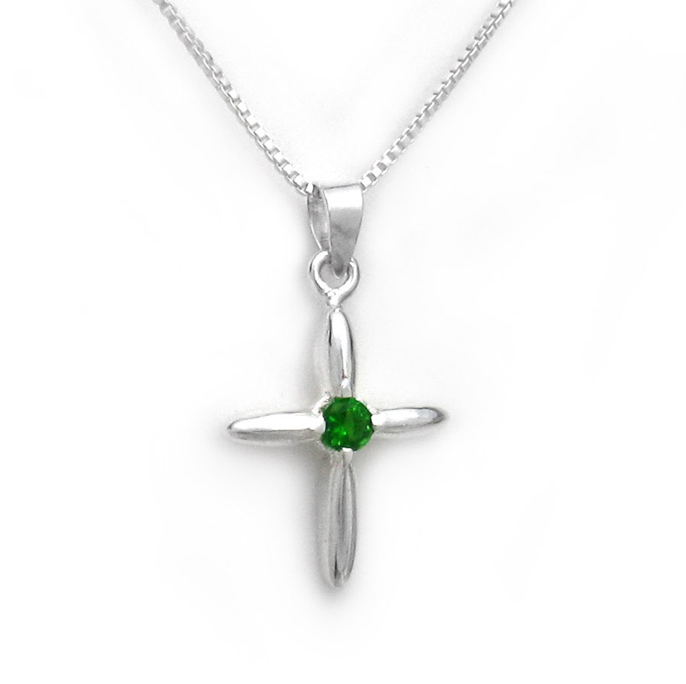 Click the button below to add the Sterling Silver Solitaire Crystal Cross Pendant Necklace, May Green to your wish list.