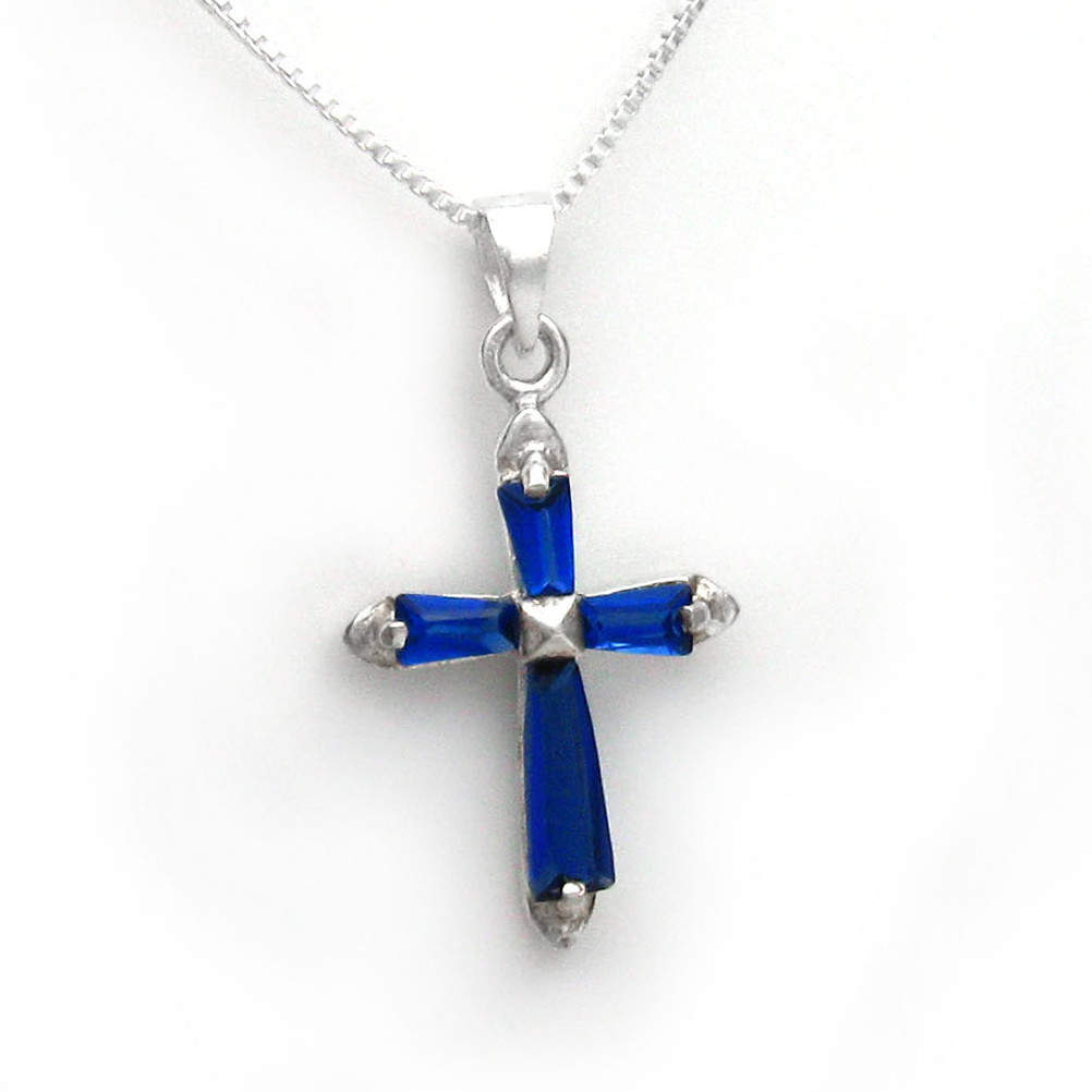 Click the button below to add the Sterling Silver Sparkling Stone Cross Pendant Necklace, September Blue to your wish list.