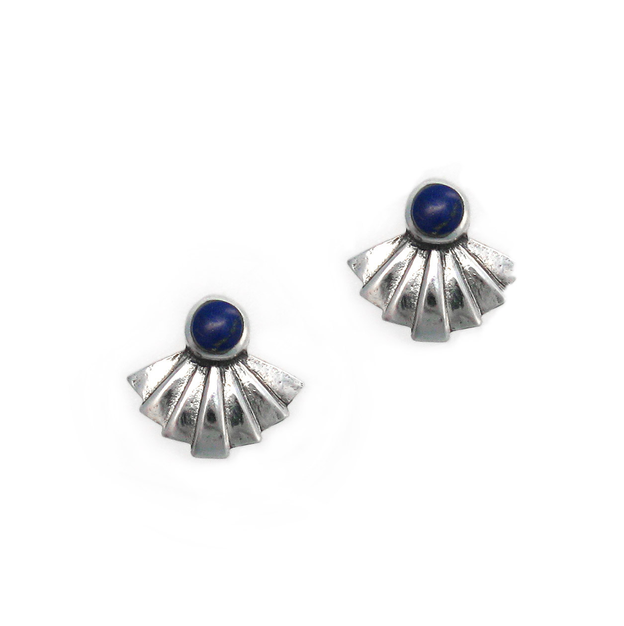 Click the button below to add the Sterling Silver Stone and Pleated Fan Stud Post Earrings, Lapis to your wish list.