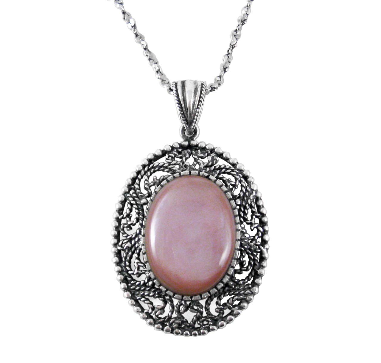 Sterling Silver Stone Filigree Frame Necklace, Pink Shell