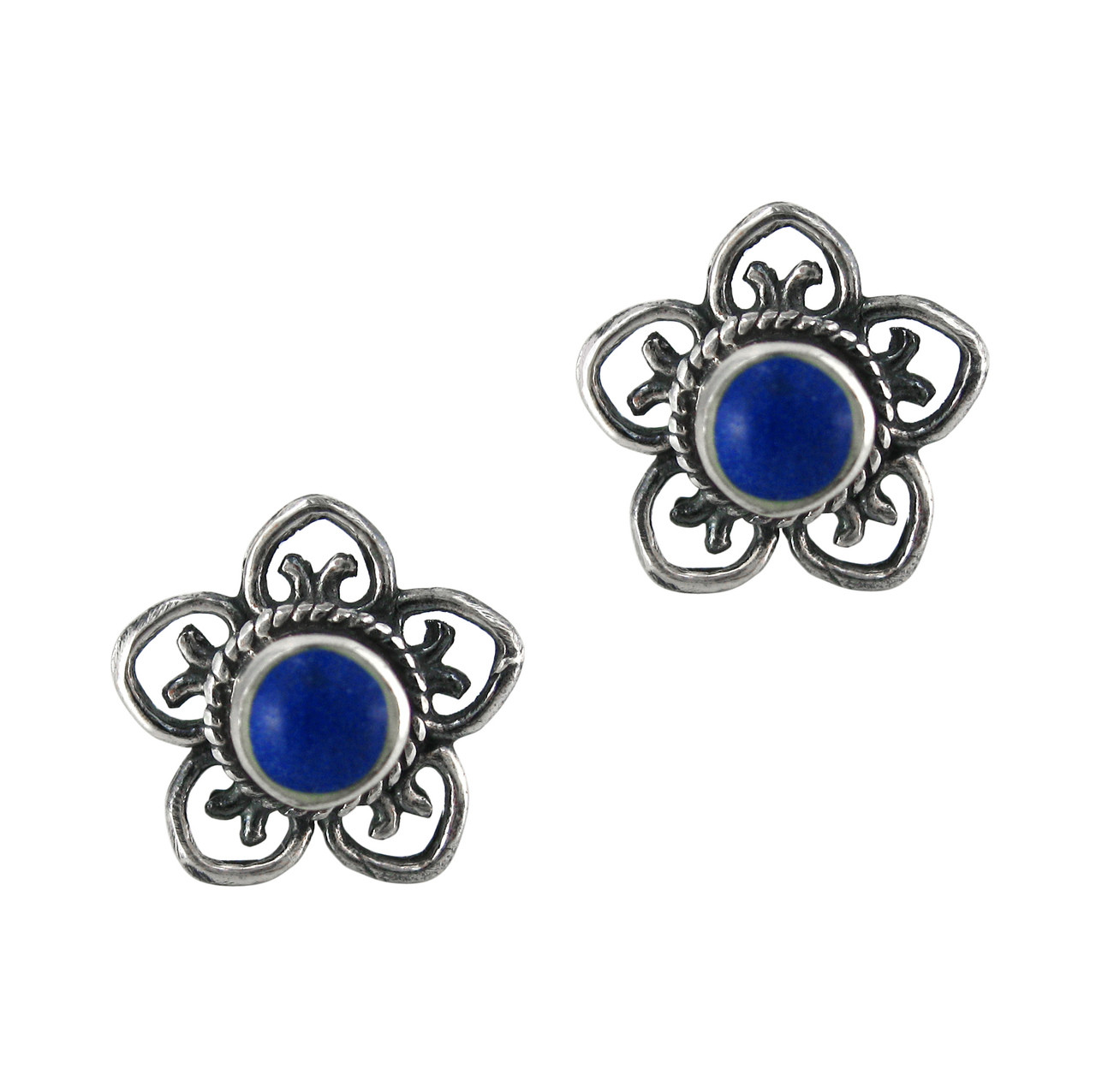 Click the button below to add the Sterling Silver Stone Flower Open Petals Stud Post Earrings, Lapis Lazuli to your wish list.