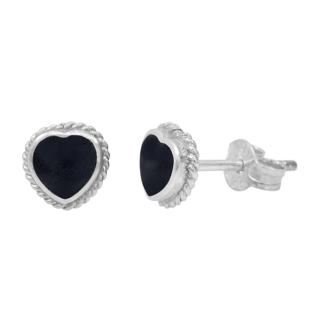 Click the button below to add the Sterling Silver Stone Heart Twist Frame 6mm Post Stud Earrings, Onyx to your wish list.
