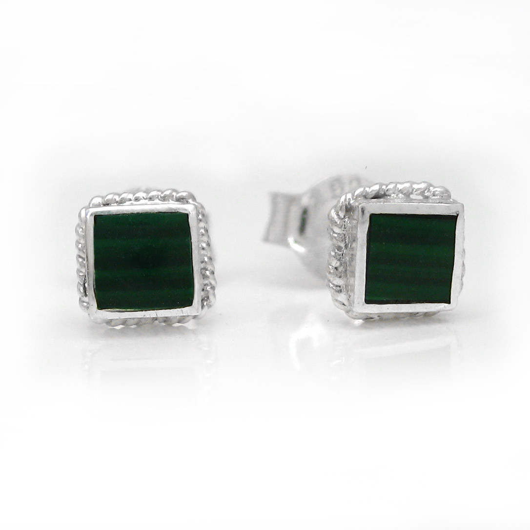 Click the button below to add the Sterling Silver Stone Inlay Square Stud Twist Rope Post Earrings, Malachite 4mm to your wish list.
