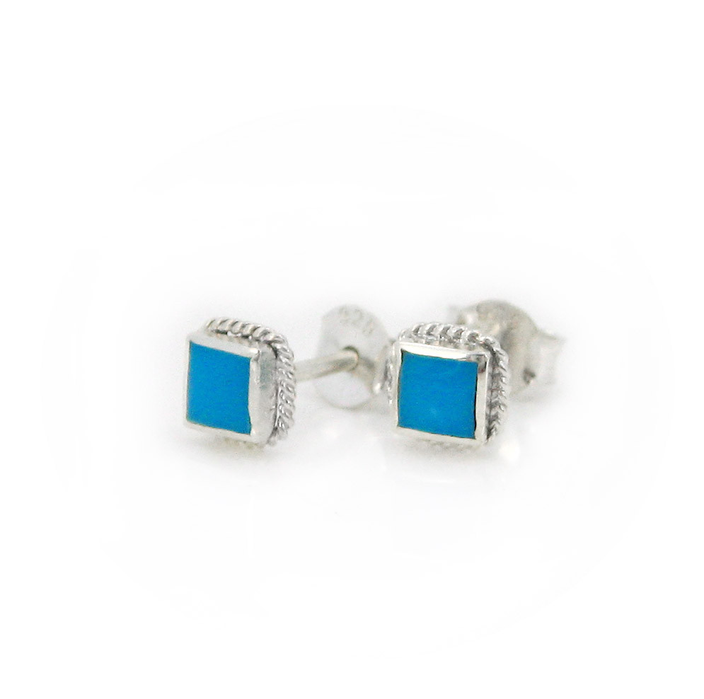 Click the button below to add the Sterling Silver Stone Inlay Square Stud Twist Rope Post Earrings, Turquoise 4mm to your wish list.