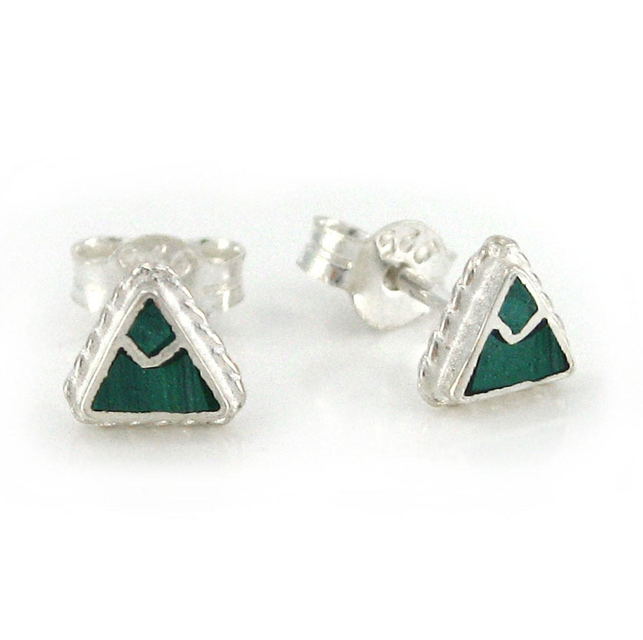 Click the button below to add the Sterling Silver Stone Inlay Triangle Everyday "Mara" Stud Post Earrings, Malachite to your wish list.