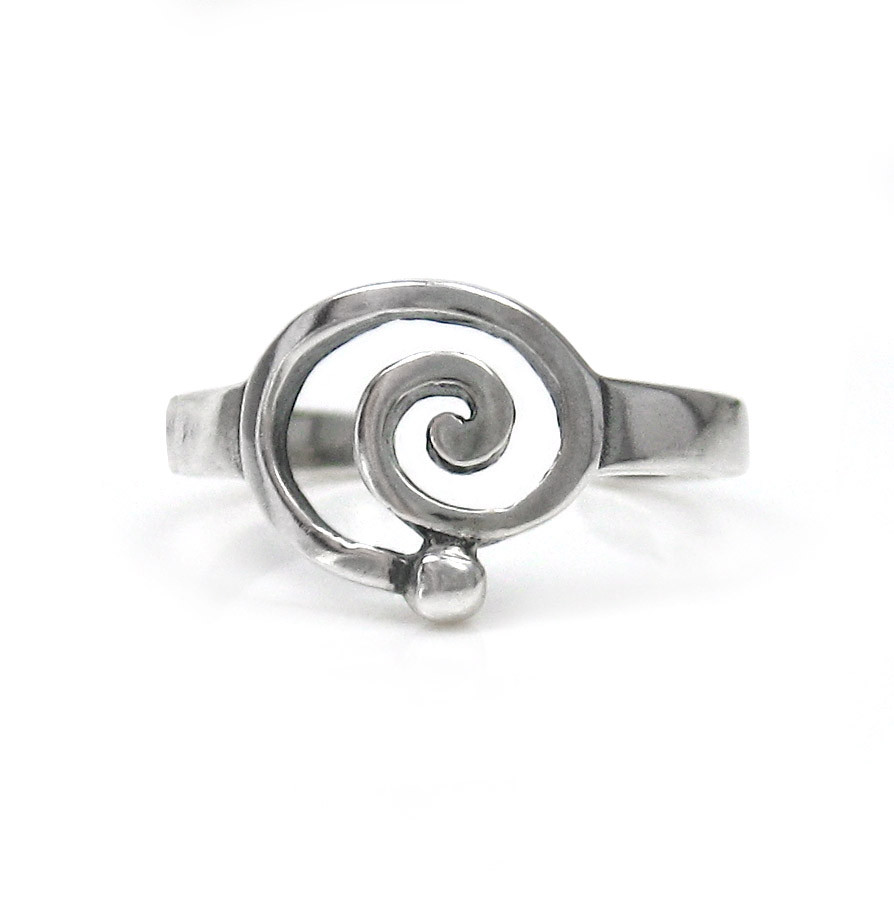 Sterling silver swirl circle spiral adjustable toe ring. Ring is 3/8 inch tall. Adjustable toe ring opens in the back. Slide on toe ring from the top of the toe, do not bend the band open. Adjustable toe ring accommodates many sizes. Photo enlarged to show details.