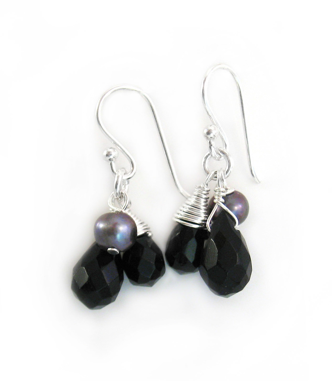 Click the button below to add the Sterling Silver Teardrop Stone Cluster Drop Earrings, Black to your wish list.