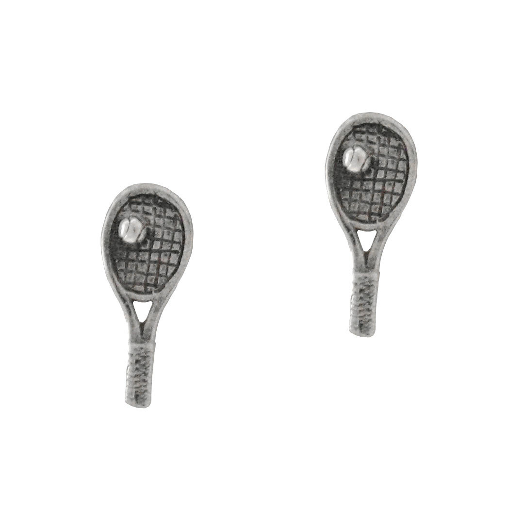 Adorable and very detailed tennis racket post earrings. Antique finish to enhance details. Photo enlarged to show details. Show your love of the game!