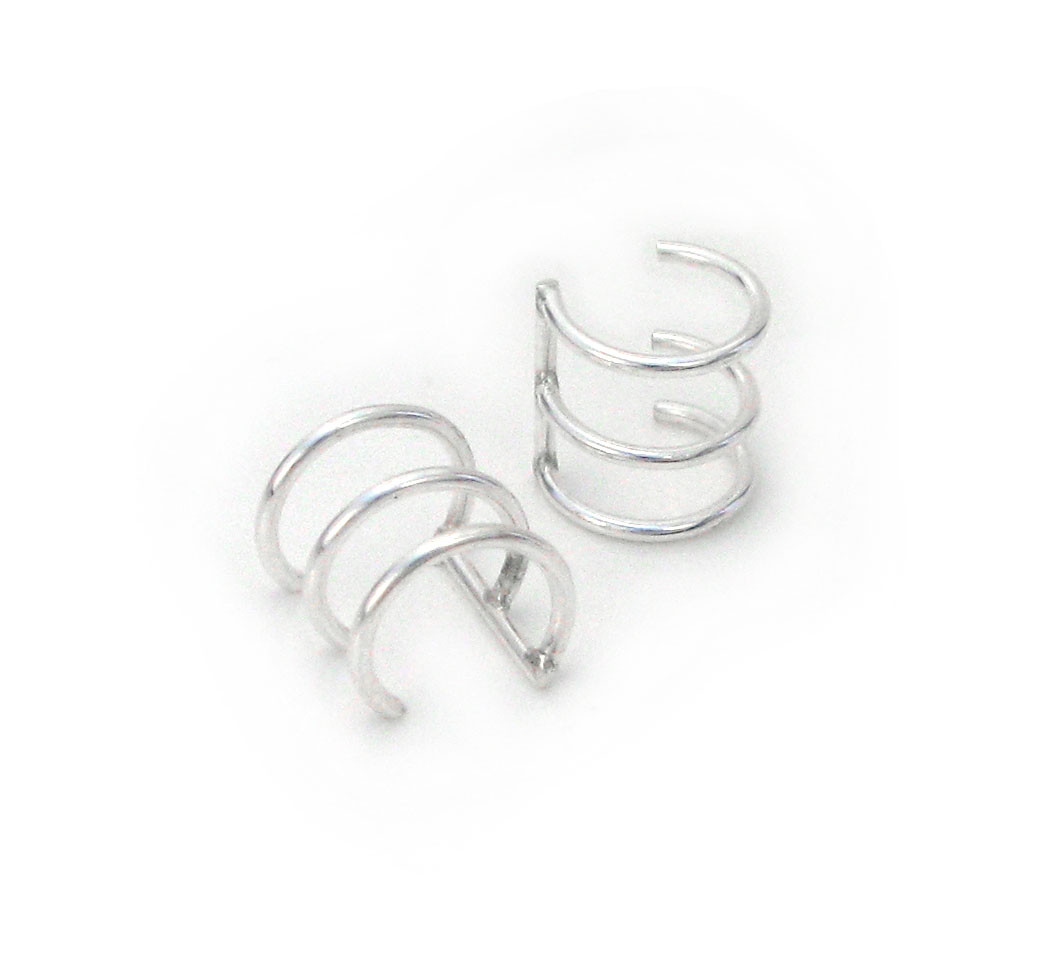 Loading... Please wait...Three wire bars loop ear cuff connected on one side. The design gives the appearance of three piercing. Unisex design. Photo enlarged to show details. Photo shows two angles of the ear cuff, please note the ear cuff is sold as an individual piece.