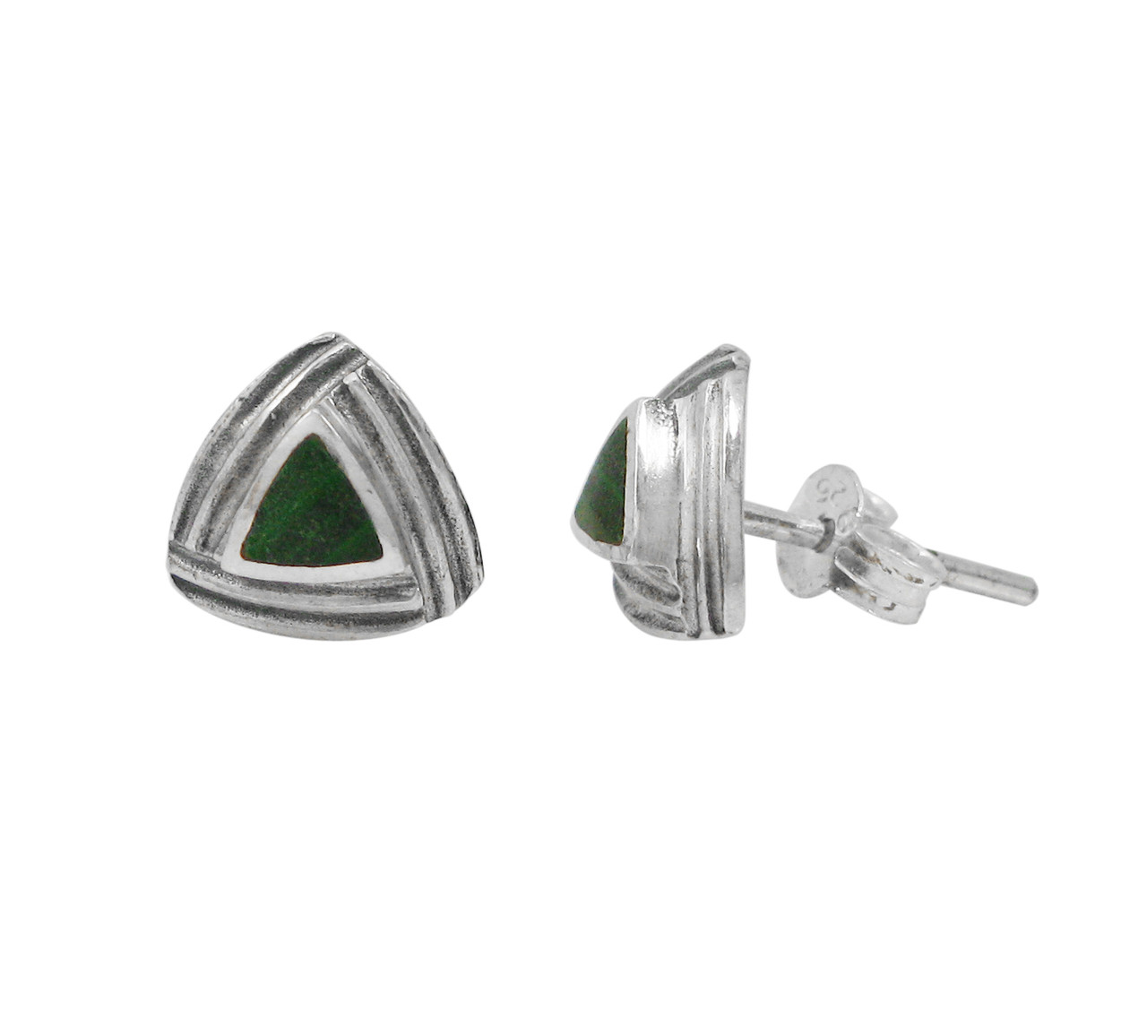 Click the button below to add the Sterling Silver Triangle Stone Modern Frame Post Stud Earrings, Malachite to your wish list.