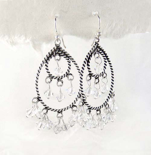 Click the button below to add the Sterling Silver Twist Rope Teardrop Circle Open Chandelier Earrings, Clear to your wish list.
