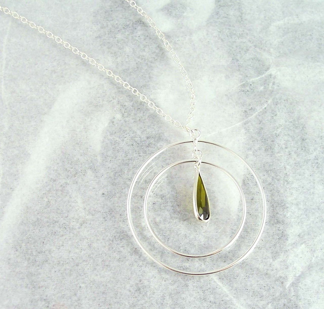 Click the button below to add the Sterling Silver Two Circles Charm Teardrop Crystal Center Chain Necklace, Olive to your wish list.