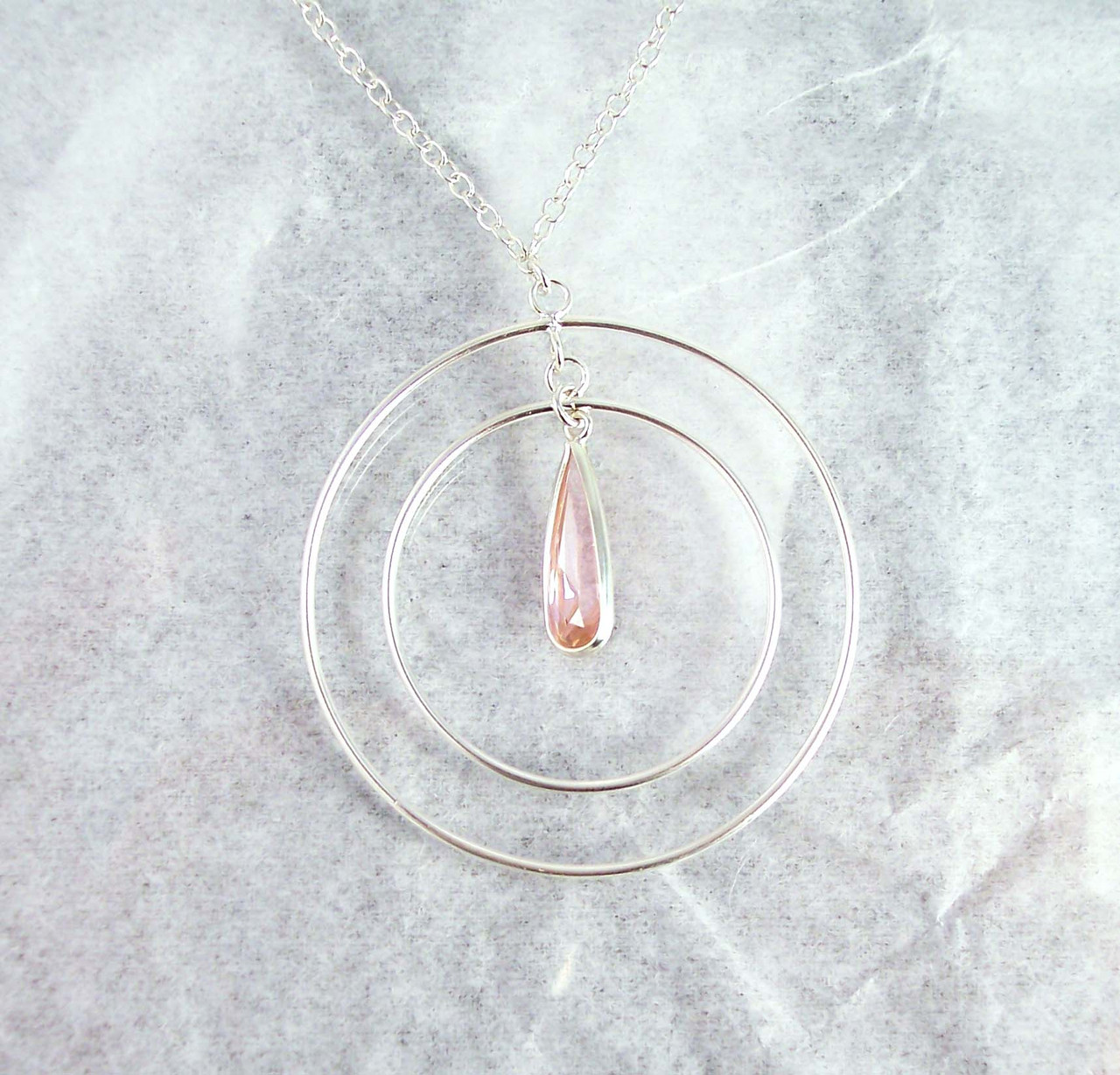 Click the button below to add the Sterling Silver Two Circles Charm Teardrop Crystal Center Chain Necklace, Pink to your wish list.